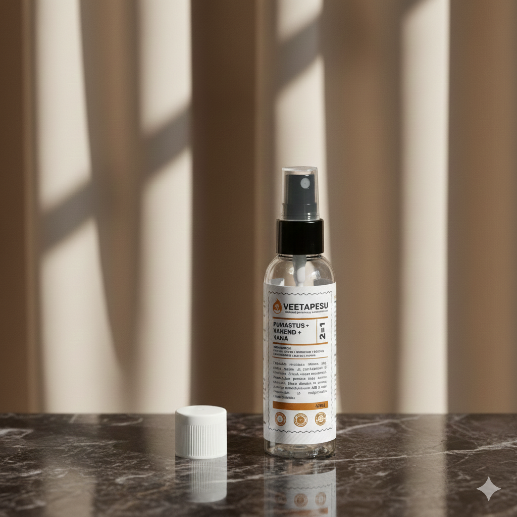 1 x tühi Veetapesu 60ml pihustiga pudel.